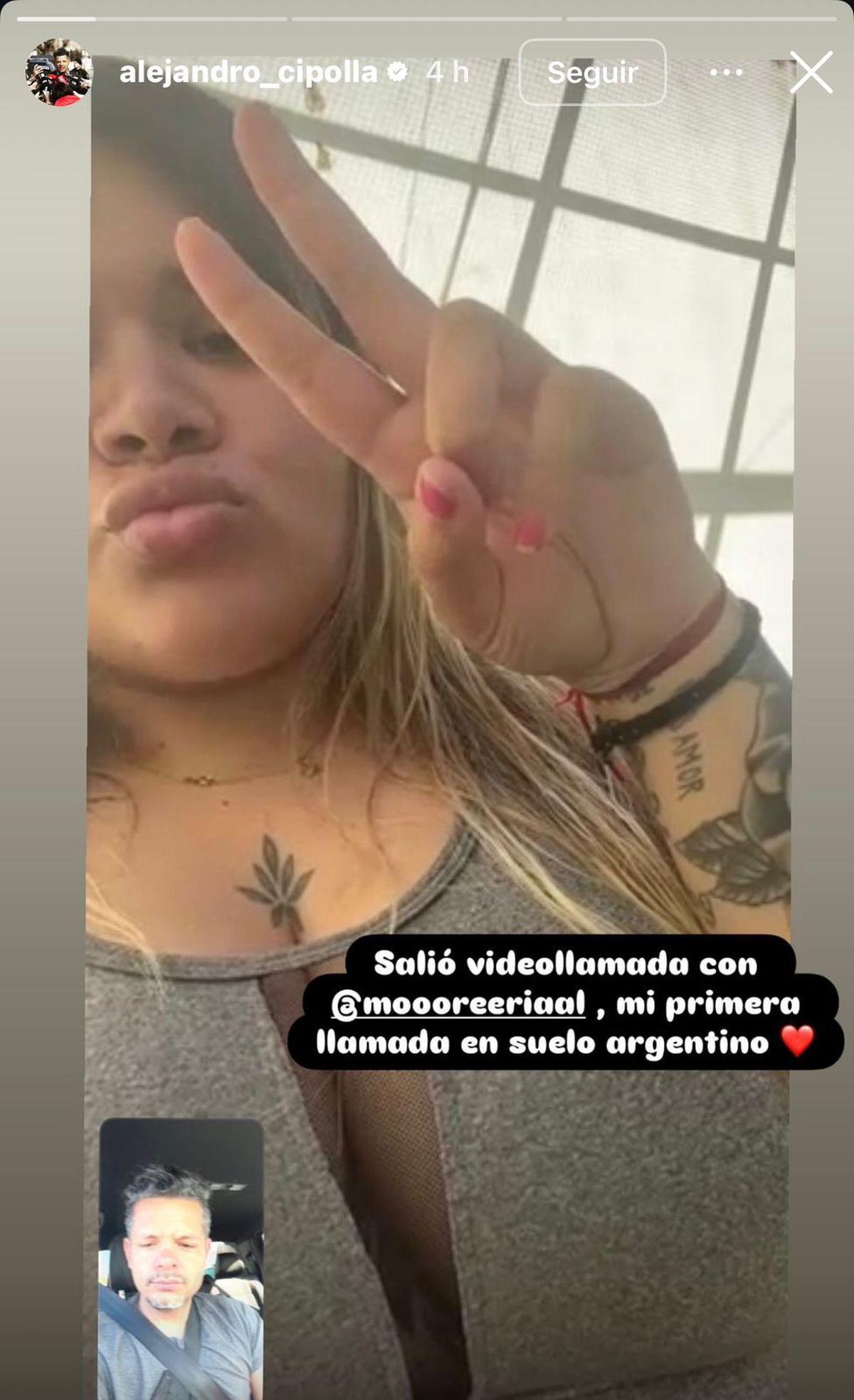 Desde sus historias de Instagram, el letrado publicó una captura de pantalla del llamado y escribió junto a la imagen: “Salió videollamada con More Rial. Mi primera llamada en suelo argentino”, dejando ver cómo se encuentra actualmente la hija de Jorge Rial.
