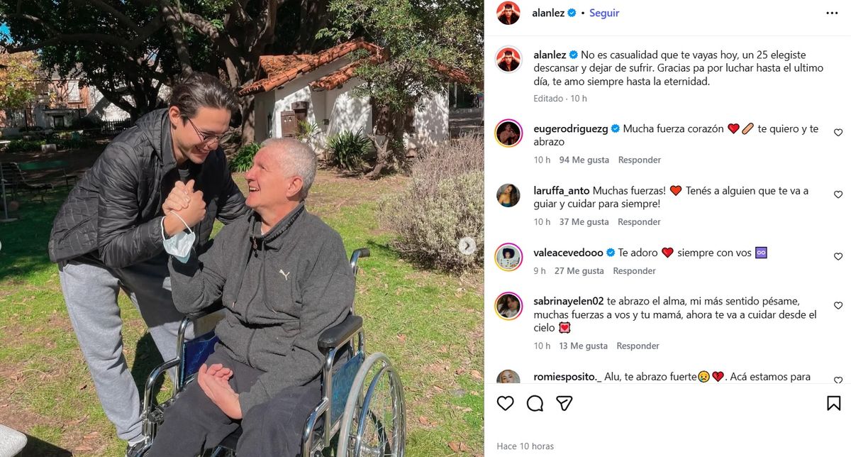 Lo cierto es que tras semanas de profunda angustia por la salud de su padre, quien se encontraba internado y atravesaba un delicado estado de salud por una dura enfermedad, el miércoles 25 de marzo, justo en la fecha en que Alan cumplía 30 años, el artista despidió con profundo dolor a su papá a través de un emotivo mensaje en las redes sociales.