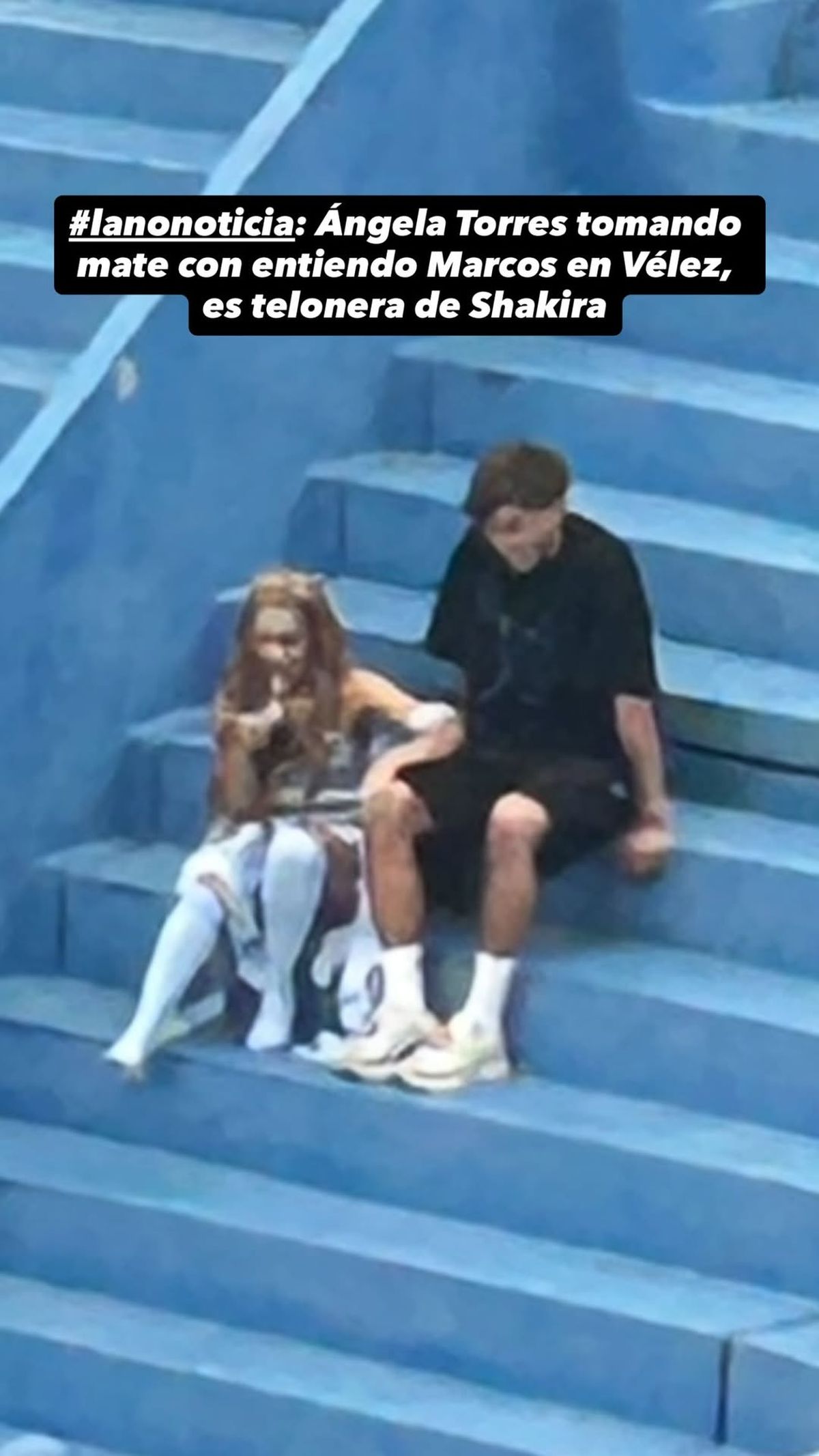 “#LaNoNoticia: Ángela Torres tomando mate con, entiendo, Marcos, en Vélez. Ella es telonera de Shakira”, describió Pochi en una historia de Instagram con la foto en cuestión.
