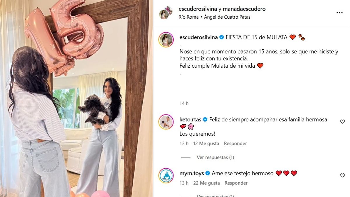 En redes sociales, la artista compartió una serie de fotos y videos del evento, donde mostró cada instancia del festejo que armó con dedicación. Allí se pudo ver a Mulata disfrutando de su día rodeada de mimos y caricias, mientras la bailarina escribía unas palabras que dejaron en claro cuánto significa su mascota para ella. “Fiesta de 15 de Mulata. No sé en qué momento pasaron 15 años, solo sé que me hiciste y hacés feliz con tu existencia. Feliz cumple, Mulata de mi vida”, expresó Silvina, visiblemente conmovida por este nuevo aniversario.