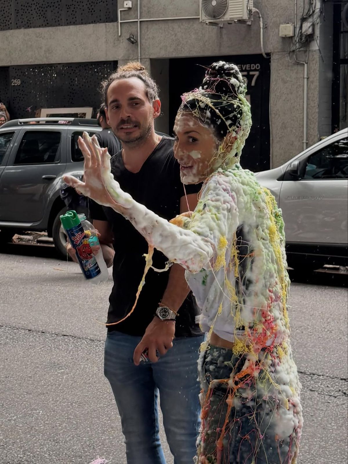 En el carrusel se la puede ver a puro festejo en la vereda, llena de espuma y posando detrás del clásico marco de egresados, donde en este caso reza "Ya soy locutora", junto a detalles de flores, mariposas y un micrófono radial sobre diferentes postales suyas.