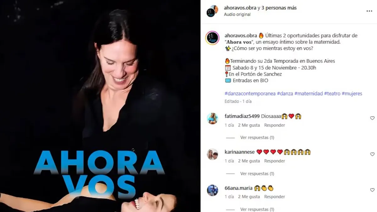 Actualmente, además de trabajar como profesora de las técnicas Alexander y TakeTina, la ex pareja de Marcelo Tinelli protagoniza la obra Ahora vos, una propuesta teatral que aborda la maternidad desde una mirada íntima y emocional. En sus redes sociales, la bailarina compartió algunos detalles del proyecto y escribió: “¿Cómo ser yo mientras estoy en vos? Estamos terminando su segunda temporada en Buenos Aires. Sábado 8 y 15 de noviembre a las 20:30 en el Portón de Sánchez”.