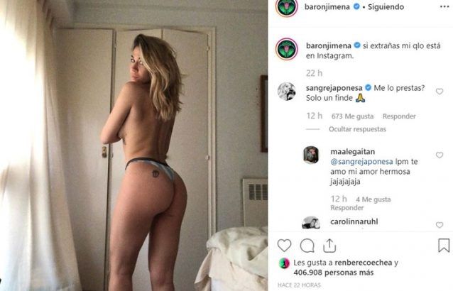 Mientras disfruta del éxito de su nuevo lanzamiento musical denominado “Se acabó”, Barón compartió con sus seguidores una foto posando de espalda y luciendo sólo una micro tanga. El posteo recibió más de 430 mil “me gusta” y cientos de comentarios.