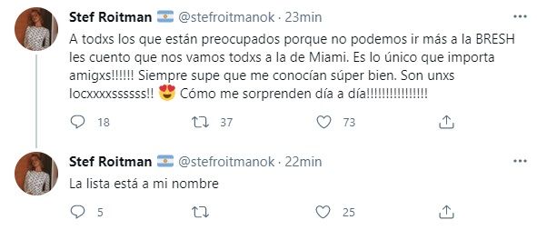 LEER MÁS El polémico tuit de Stefi Roitman tras las restricciones: "Nos vamos todxs a la fiesta de Miami"