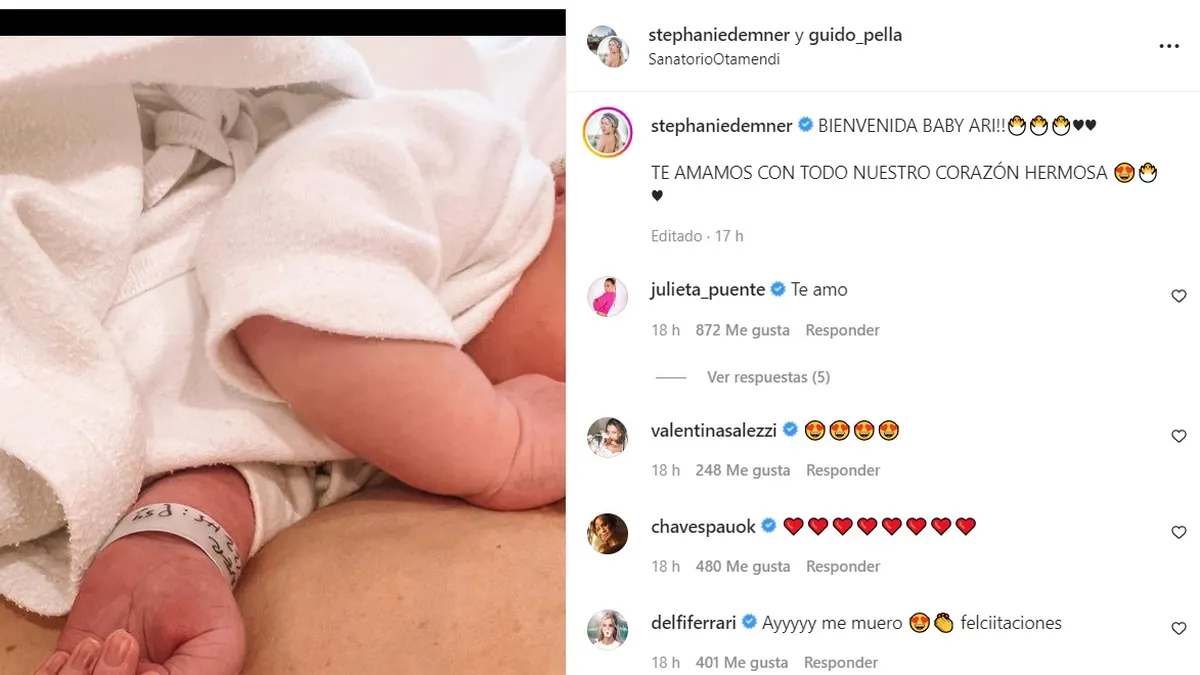 Maravillada y enamorada de su hija, la influencer y el tenista compartieron después las primeras fotos en primer plano del rostro de la pequeña Arianna. "Nuestra Ari bebé, te amamos tanto chiquitina", expresó ella.