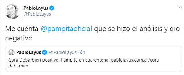Horas después de la publicación, Cora Debarbieri contó en su Instagram que dio positivo. La periodista se vio bastante afectada por la noticia y según gente de su entorno lloró mucho cuando se enteró porque ella posee asma. Por suerte, hasta el momento es asintomática y transita la enfermedad sin sobresaltos.