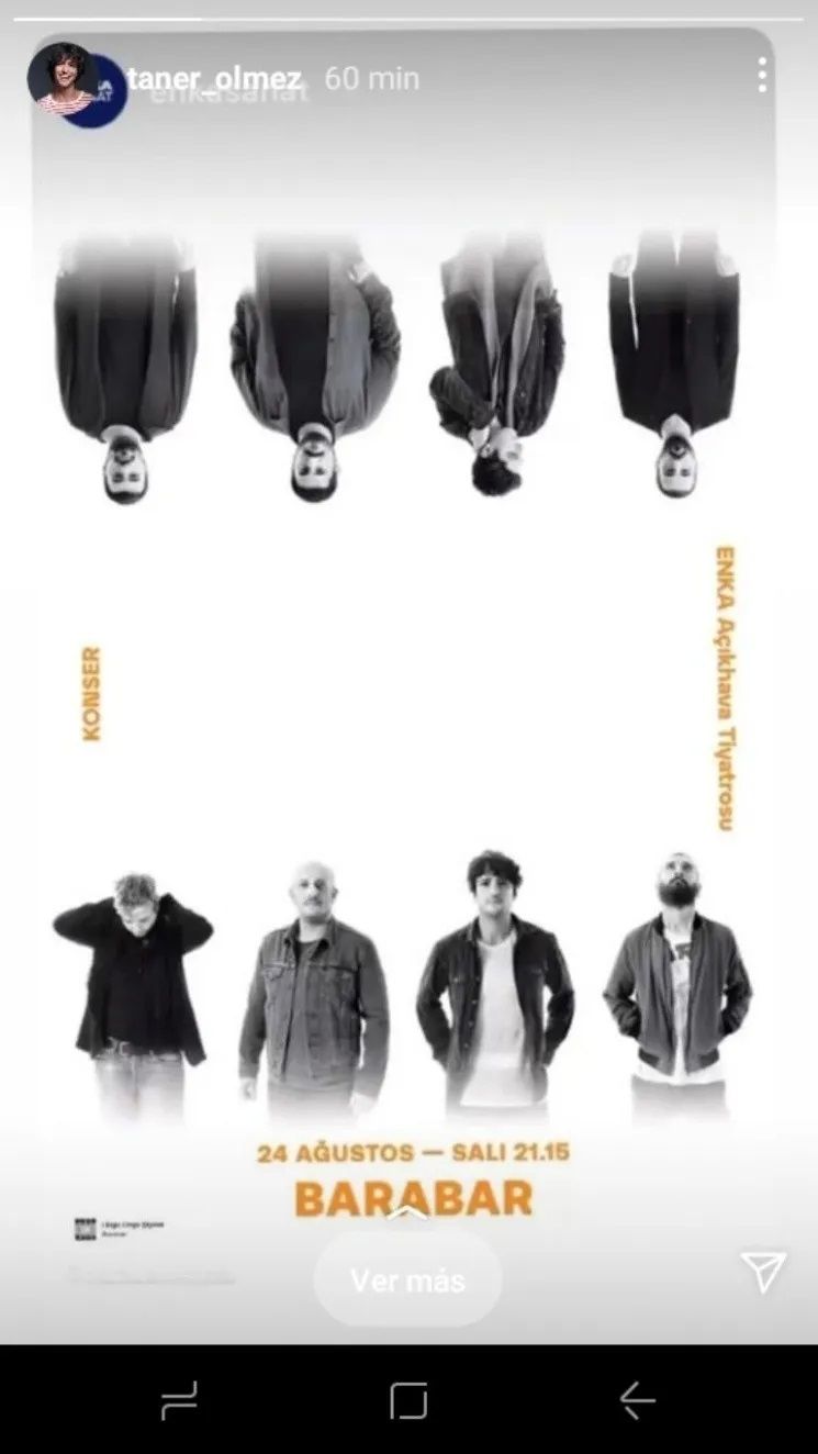 Según anunció a través de sus redes sociales, el próximo 24 de agosto tendrá una presentación con su banda. Taner debutó en la actuación en 2009 a sus 23 años y pasó por varias producciones como "Kayip Sehir" en 2012, donde se puso en la piel de Sadik, y "Medcezir" del 2013, que le valió la fama en su país encarnando a Mert Asim Serez.