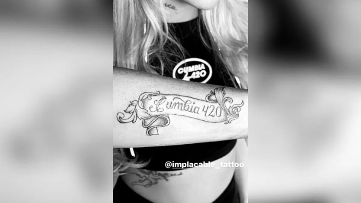 En el posteo que hizo en Instagram, se puede ver el antebrazo de la rubia y bastante grande se lee "Cumbia 420", el género que llevó a la fama al cantante con sus canciones.