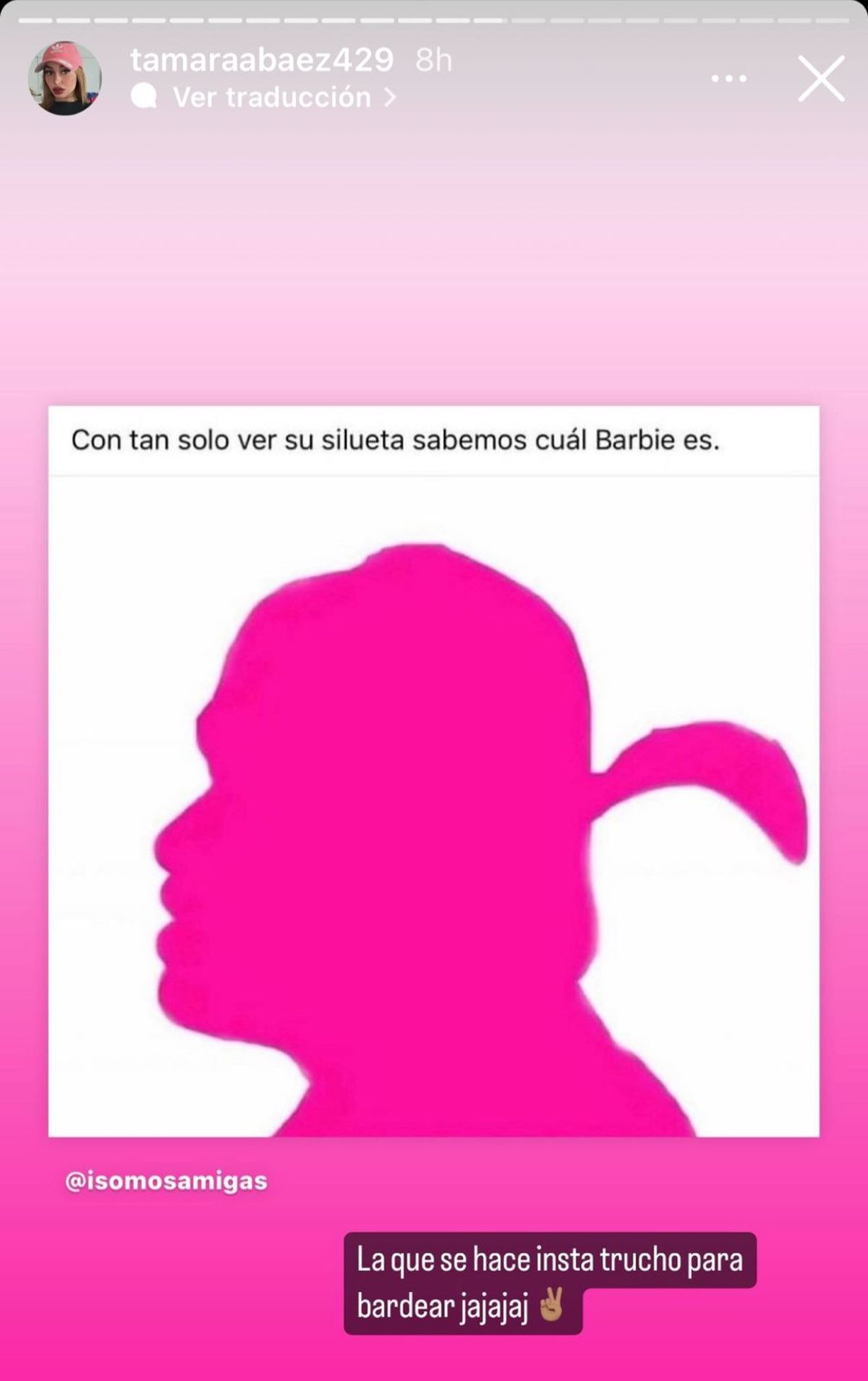 Finalmente, utilizó un meme de la exitosa película Barbie y con un pelicular figura con la frase "con tal solo ver su silueta sabemos cuál Barbie es", escribió: "La que se hace un insta trucho para bardear jaja".
