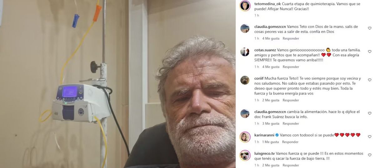Teto Medina atraviesa un momento complejo de salud tras haber sido diagnosticado con cáncer de colon con metástasis en el hígado. Los médicos decidieron intervenirlo de urgencia y comenzar un tratamiento de quimioterapia, aunque no descartan la posibilidad de una nueva cirugía en el futuro.