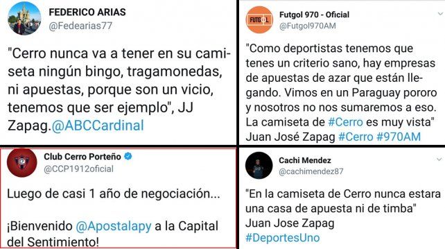El periodista deportivo recopiló fragmentos de entrevistas en las que el presidente de Cerro Porteño prometía no promocionar jamás, en la camiseta del club, empresas que tuvieran que ver con "vicios, timba, apuestas o juegos de azar", y contrastó esas afirmaciones con un tuit de la cuenta oficial del club, dando la bienvenida a una empresa de dicho rubro.