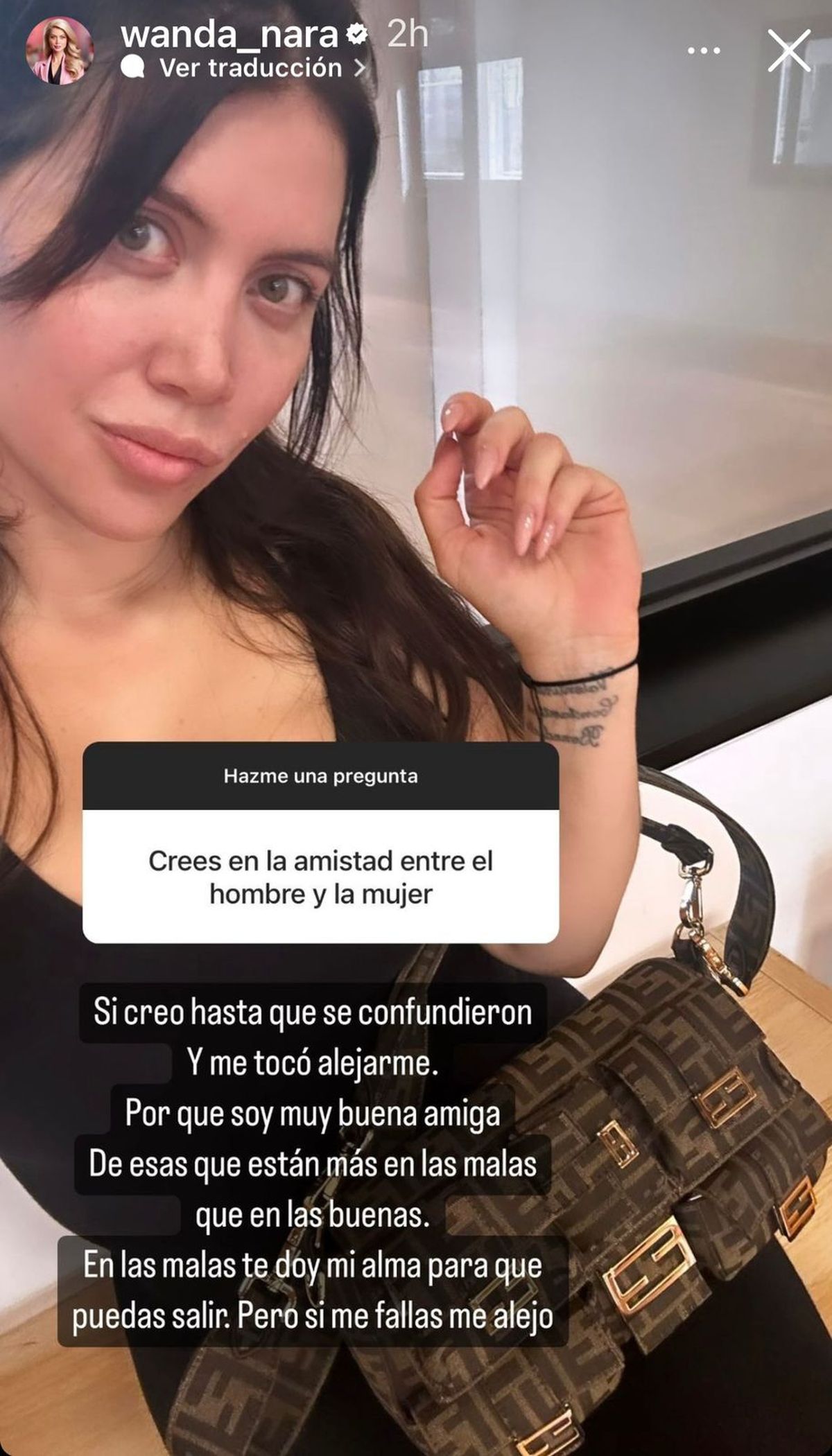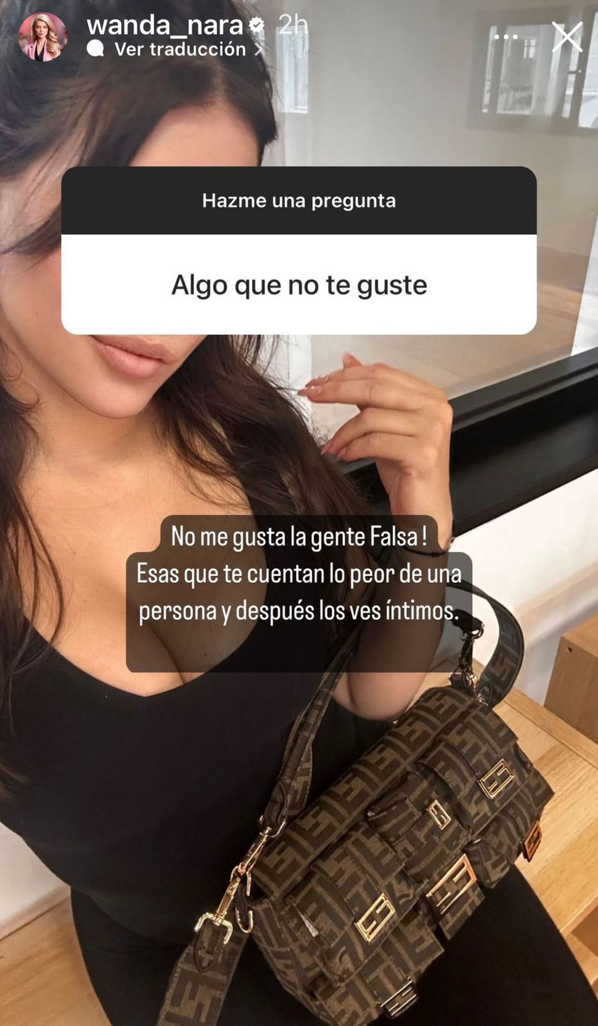 En tanto, frente a una siguiente consulta queriendo saber algo que no le guste, Wanda Nara volvió a arremeter sin filtro asegurando: "No me gusta la gente Falsa! Esas que te cuentan lo peor de una persona y después los ves íntimos". Más clara, imposible.