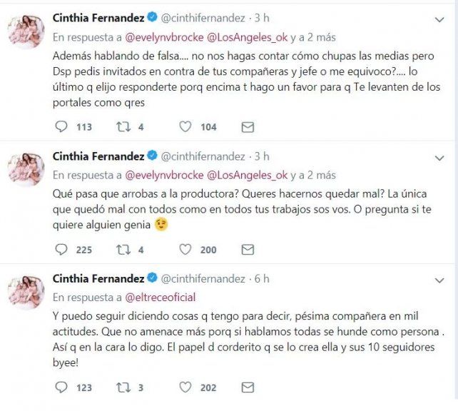 Tras pelearse al aire, Cinthia Fernández y Evelyn von Brocke siguieron diciéndose de todo en Twitter