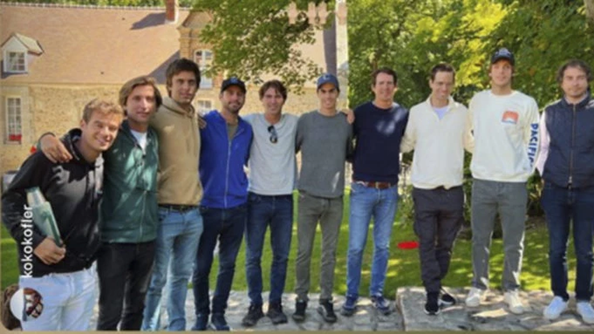 Al polista, para el que se le juntaron fondos así termina su recuperación motriz en una clínica de Atlanta, posó con sus amigos y compañeros que fueron a saludarlo en el jardín de su casa.