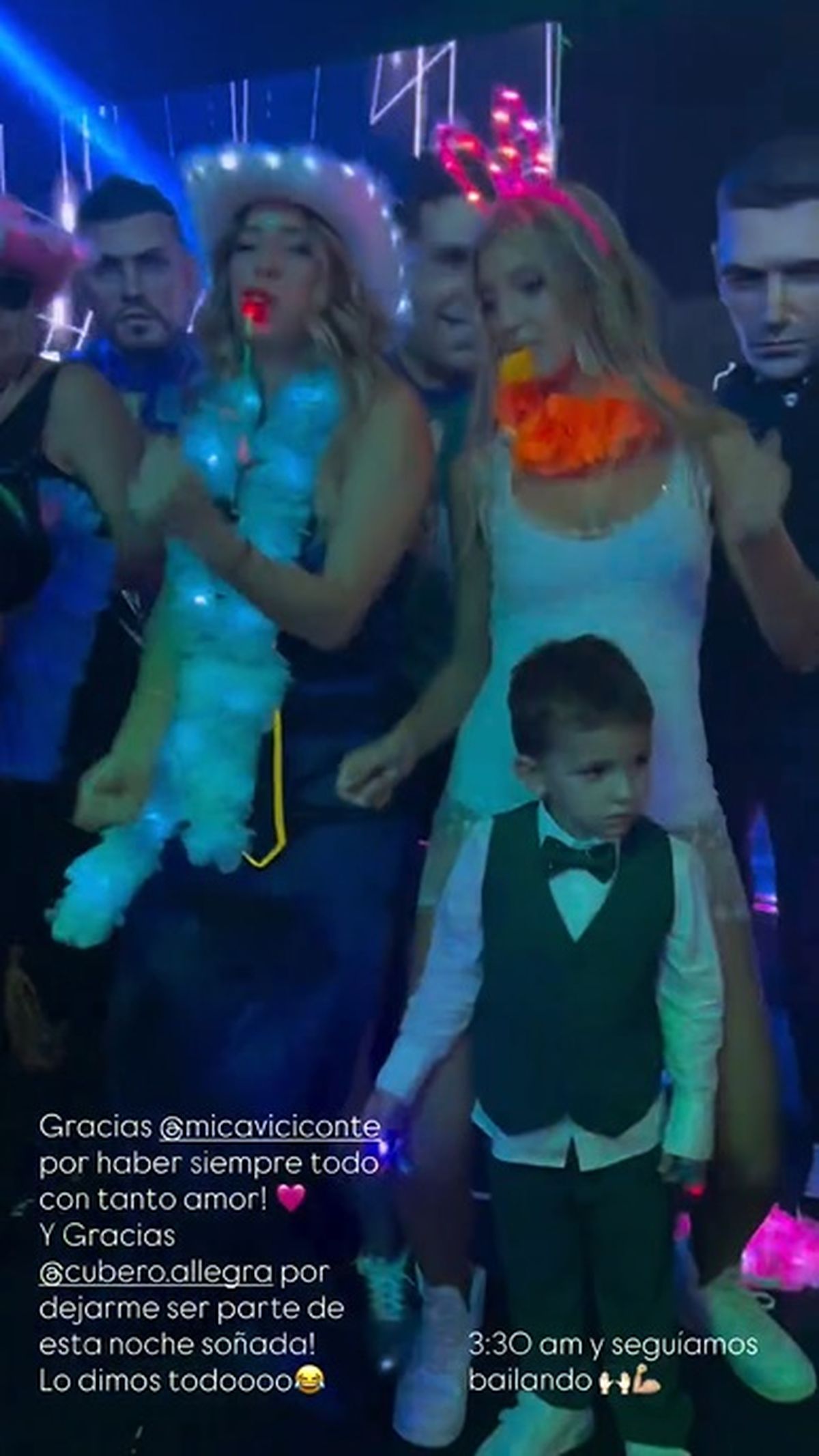 "Gracias Mica Viciconte por hacer siempre todo con tanto amor! Y gracias Allegra Cubero por dejarme ser parte de esta noche soñada. Lo dimos todo. 3:30 AM y seguimos bailando", reza el mensaje que la hija de Nicole no dudó en compartir sin pensar cómo le podrá caer a su madre, quien no formó parte de la celebración por decisión de su padre y la influencer.