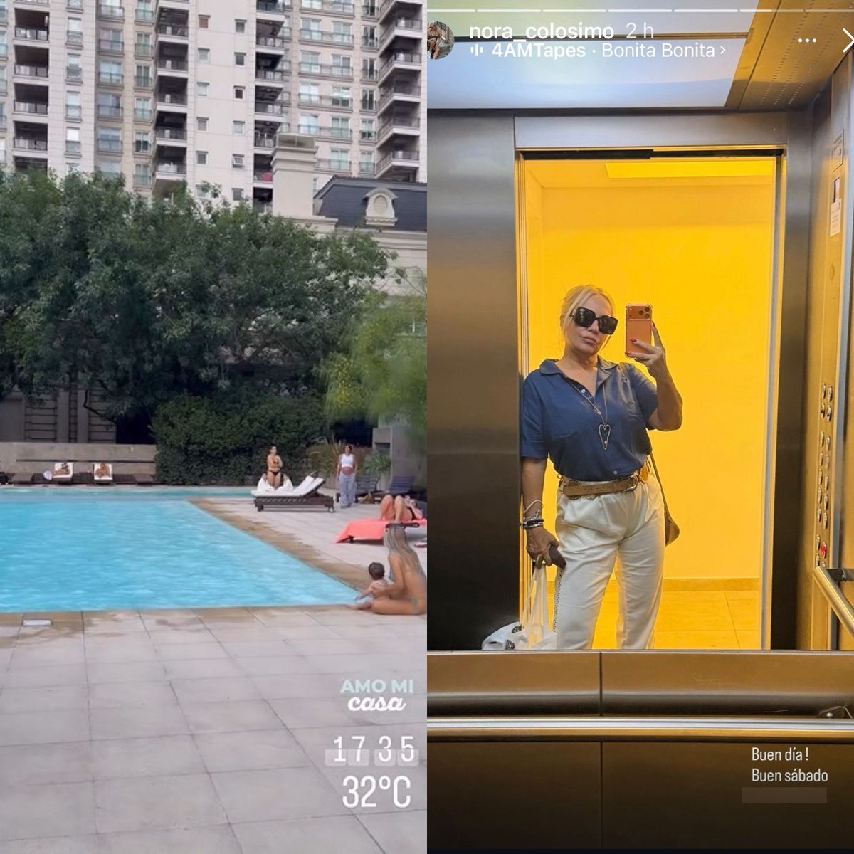 En medio del sofocante calor que azotó -y continúa azotando hoy- a la ciudad de Buenos Aires en la tarde del viernes, la exesposa de Andrés Nara compartió un video en sus Instagram Stories en el que escribió "Amo mi casa" junto a los 32 grados de ese momento. Allí puede apreciarse la lujosa piscina de la torre en la que vive en las inmediaciones de la Avenida del Libertador en el barrio de Núñez a pocos metros del Chateau Libertador donde justamente vive Wanda, su hija más polémica y la mejor posicionada económicamente.