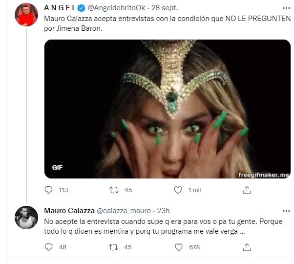 En las últimas horas se dio un fuerte cruce en Twitter entre Ángel de Brito y Mauro Caiazza, ex pareja de Jimena Barón.