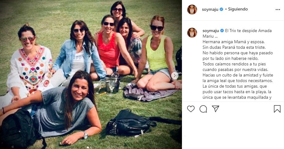 "No va a ser fácil la vida sin vos, amiga... Nada va a ser fácil después de tu partida. Pero cada vez que en algún lugar de este planeta se destape una cervecita, ahí sonará tu risa inolvidable. Agradecidas de haberte tenido, bendecidas porque permanecerás en nuestro corazón siempre. Ahora somos más amigas que antes", señaló. "Salud hermana... Te amamos con el alma", cerró Maju.