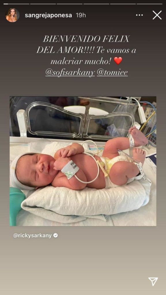 “¡Y llegó Félix lleno de vida hermoso y fuerte! ¡Para traer alegría y amor a toda esta familia que tanto lo esperaba! ¡Bienvenido, te queremos chiquitito!“, escribió la mamá de Sofía felicitando a los papás. El empresario además detalló: “Nació a las 12:41 y pesó 3.245 kg”.