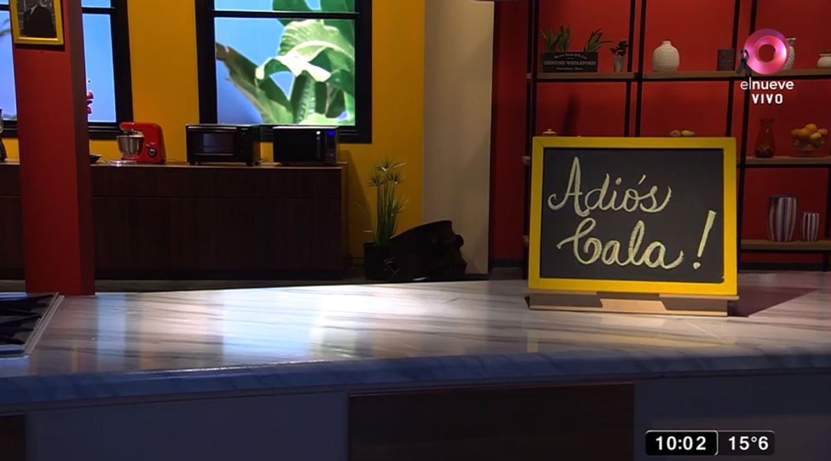 Así, llegado el horario del habitual inicio del programa diario, Telenueve dio paso a la imagen del estudio de Qué Mañana! en penumbras con la cocina vacía y una pizarra con la sentida frase "Adiós Cala!",a modo de despedida y homenaje al mismo tiempo.