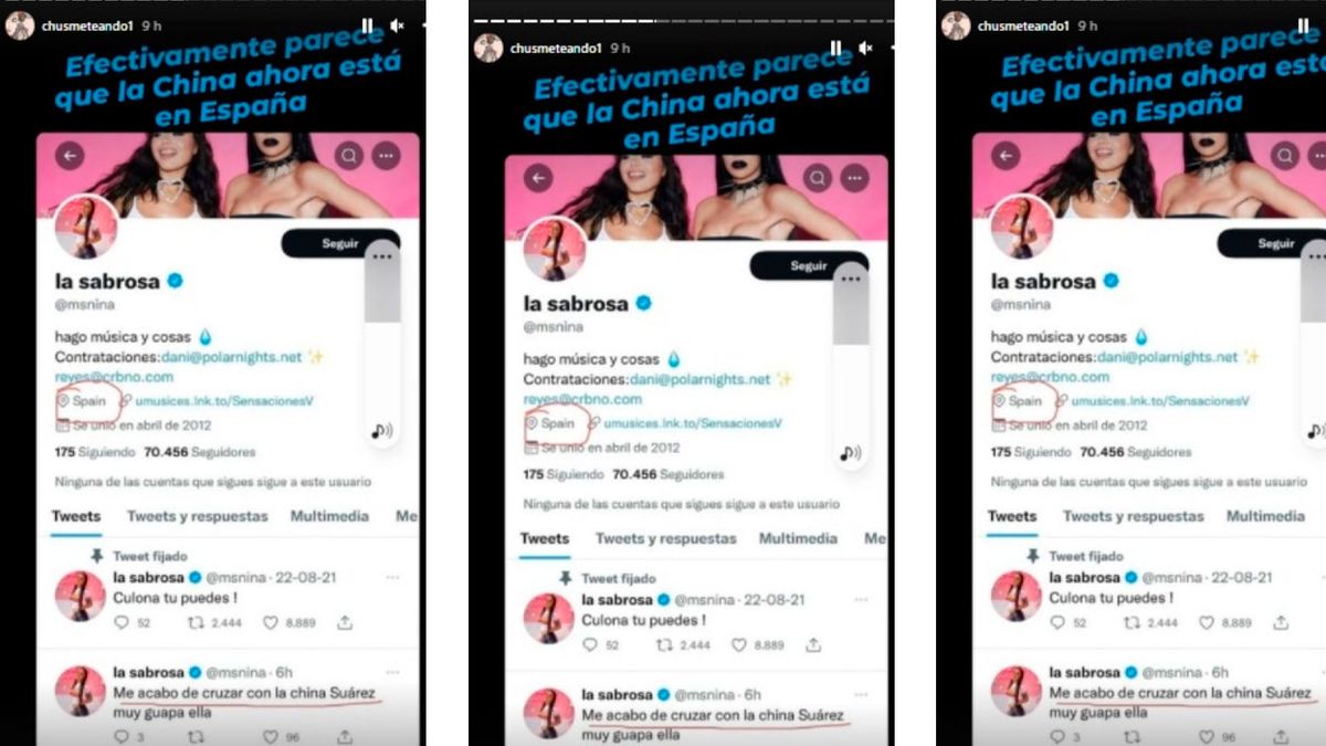 "Me cuentan que la China Suárez está pensando muy seriamente instalarse en Madrid", dijo el panelista, detallando que compromisos laborales alejarían a la actriz de la Argentina. "Ella tiene una hija con Cabré, que es Rufina, y con Benjamín Vicuña, Amancio y Magnolia. Hay charlas con ellos porque quiere instalarse en Madrid", aseguró el periodista Gustavo Méndez.