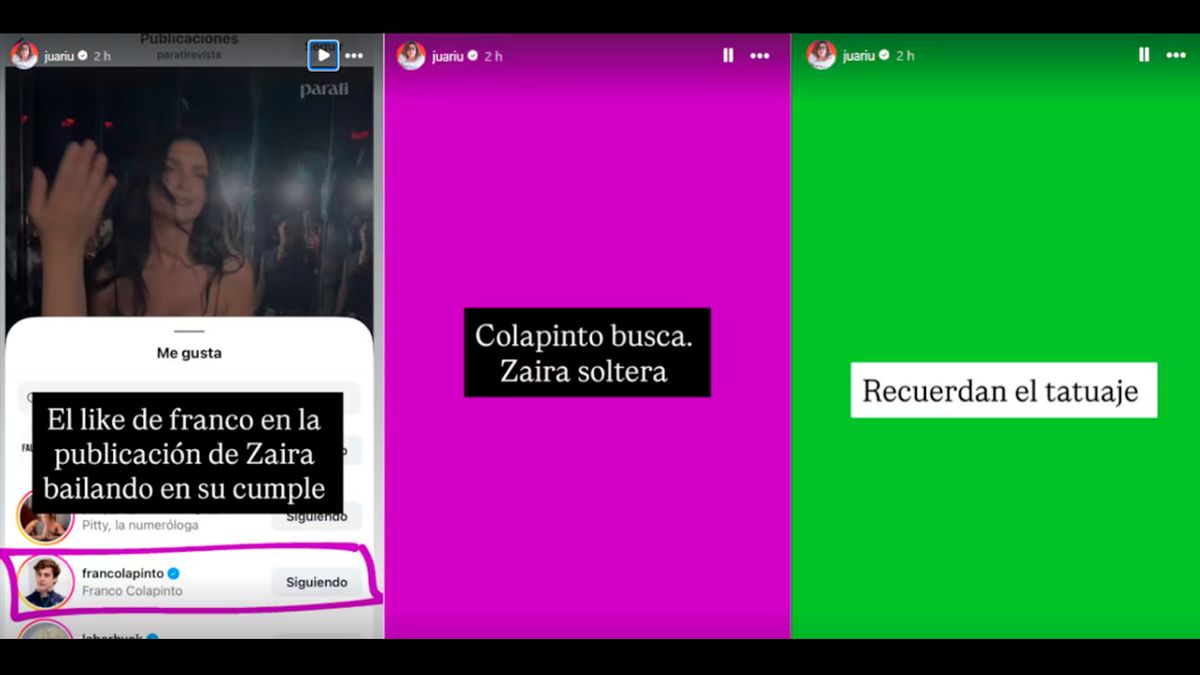 La periodista Juariu fue quien detectó el detalle y lo hizo público en sus redes: “El like de Franco en la publicación de Zaira bailando en su cumple”, escribió, acompañando la observación con una captura que rápidamente se viralizó.