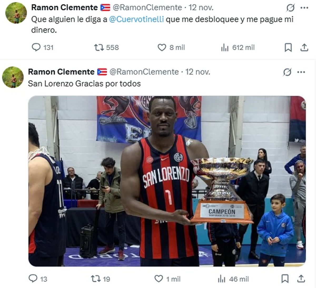 Se trata del jugador de básquet de Puerto Rico, quien años atrás fue contratado por el conductor para el primer equipo de San Lorenzo en la etapa donde fue primero vicepresidente del club y luego presidente entre 2019 y 2022, y que desde tras su salida del club insiste en una deuda que el animador mantiene con él.