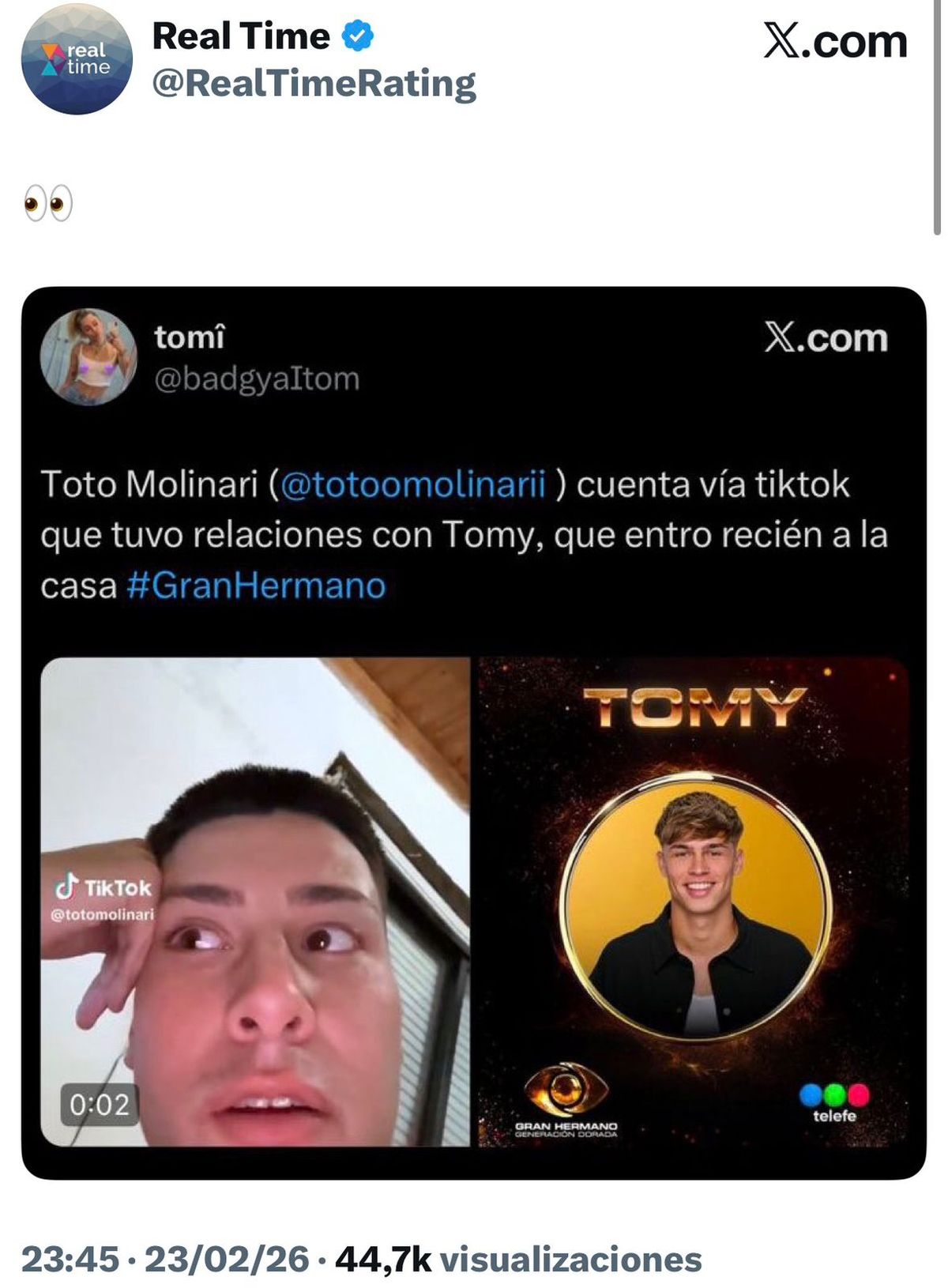Mientras tanto, en la red social X, la cuenta Real Time replicó el material, potenciando aún más su alcance y generando una catarata de reacciones entre los usuarios.
