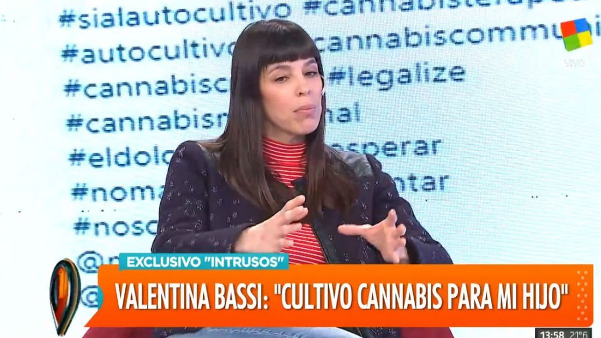 Allá por el verano de 2019 Valentina Bassi estuvo en Intrusos, América TV, donde contó de la importancia del cultivo de cannabis para la salud de su hijo.