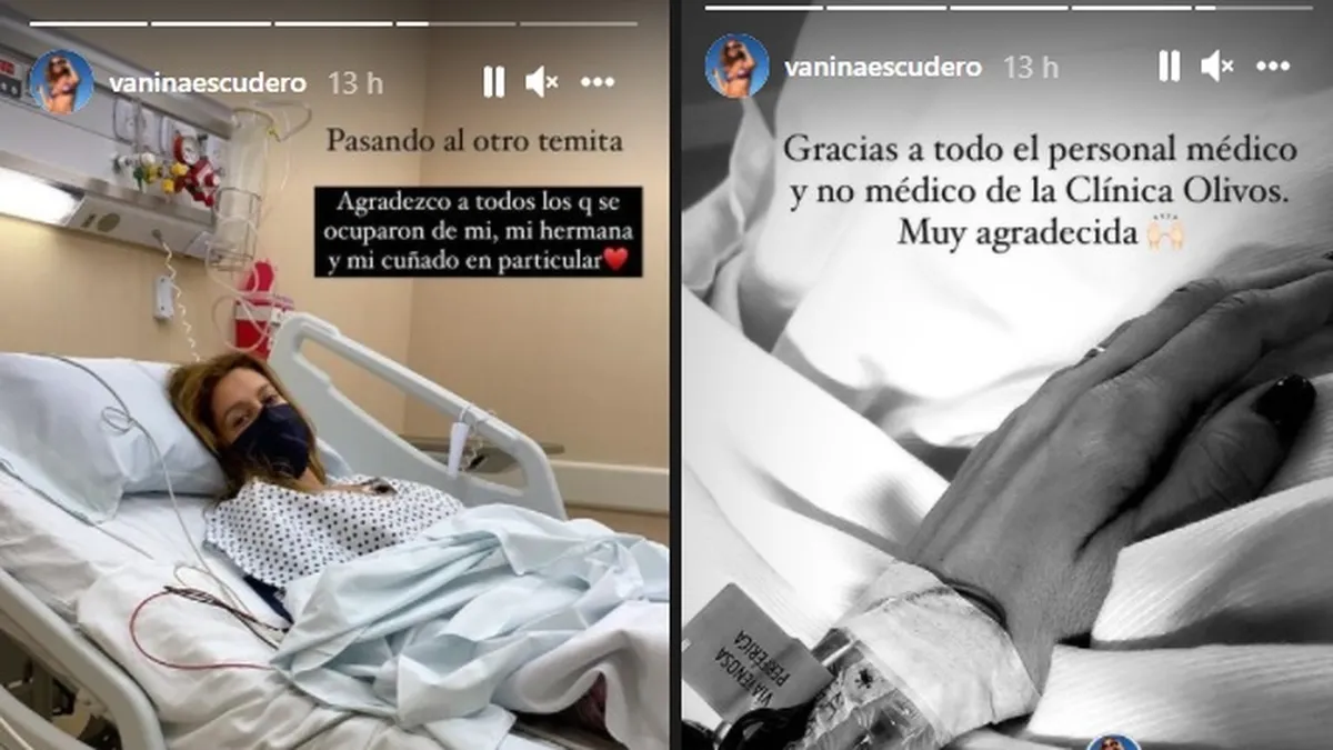 Vanina Escudero compartió en sus historias de Instagram fotos desde la clínica y dejó un mensaje de calma sobre su cuadro de salud.