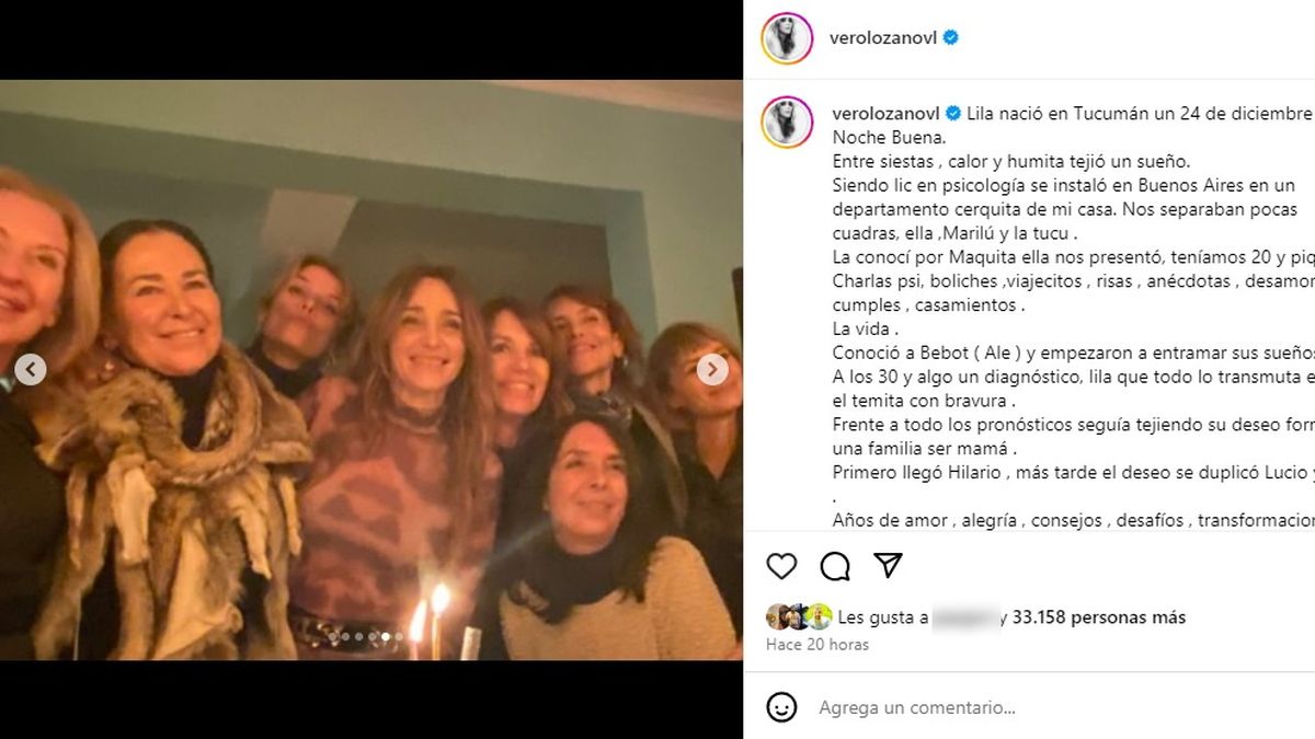 “Lila nació en Tucumán un 24 de diciembre, una Nochebuena. Entre siestas, calor y humita, tejió un sueño”, fueron las primeras palabras del sentido posteo de la conductora de Cortá por Lozano. “La conocí por Maquita, ella nos presentó, teníamos 20 y piquitos”, sumó a su recuerdo.