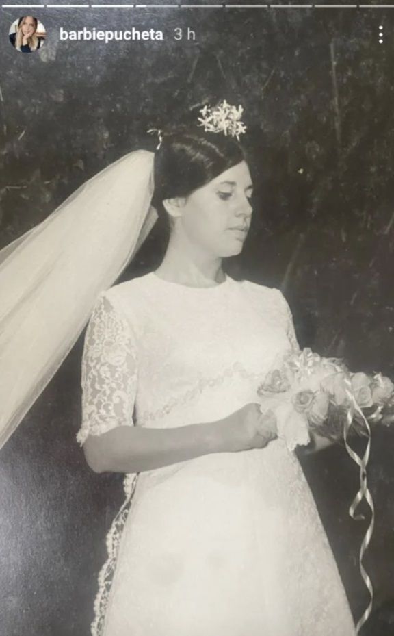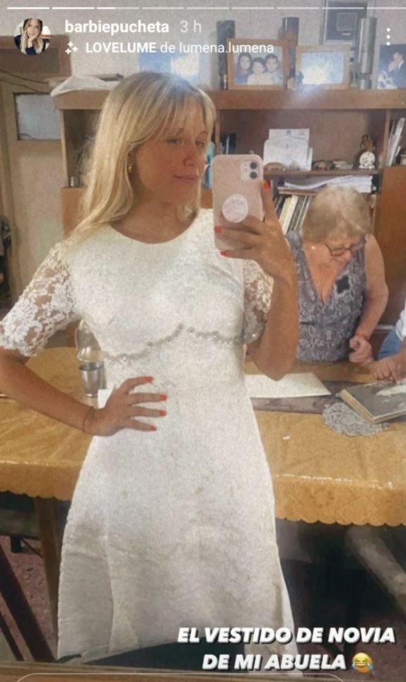 "El vestido de novia de mi abuela", expresó la joven a través de sus stories de Instagram con una selfie. Y luego mostró una foto de su abuela con el mismo vestido blanco.
