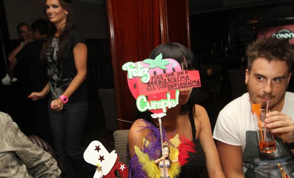 Después de cantarle el feliz cumpleaños los mozos del lugar le regalaron a Vicky un streaptease arriba de las mesas y todos los amigos de la vedette comenzaron a bailar y a divertirse.