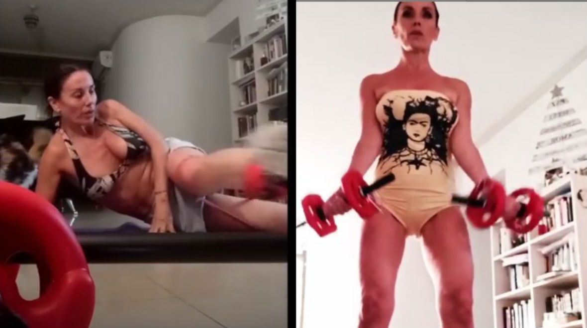 La actriz luce una impecable figura y mostró cómo cuida su cuerpo haciendo actividad física en su casa.