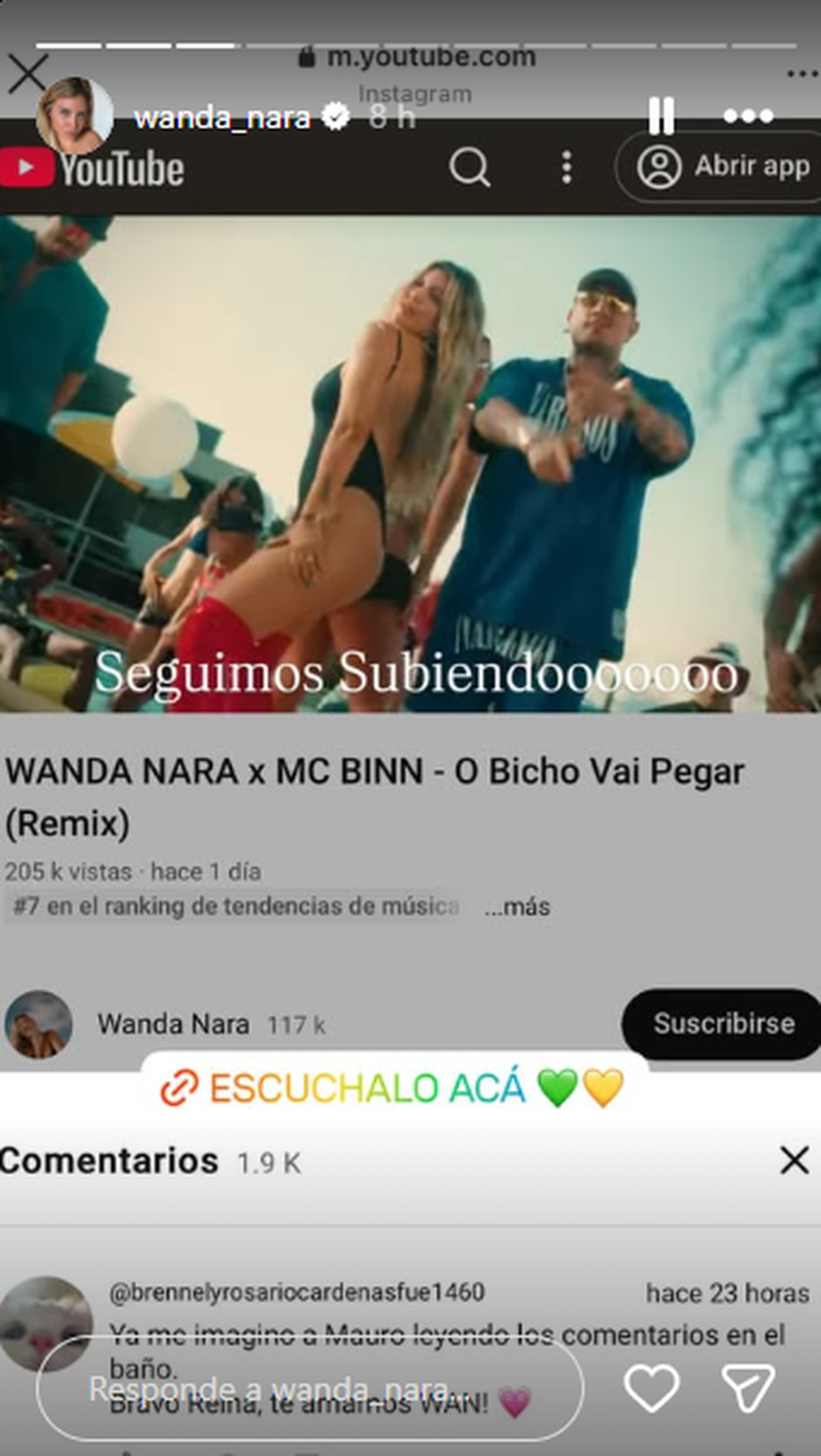 Wanda Nara compartió en redes la felicidad por el boom de su nuevo tema y, en medio de los festejos, no dejó pasar la oportunidad de incluir una indirecta dirigida a Mauro Icardi.