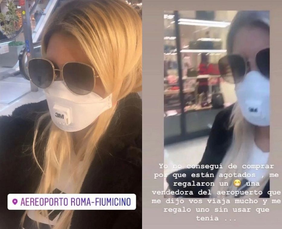 “Yo no conseguí de comprar porque están agotados. Me regalaron un barbijo una vendedora del aeropuerto que me dijo: ‘vos viajas mucho’ y me regaló uno sin usar que tenía”, contó Nara en una historia.