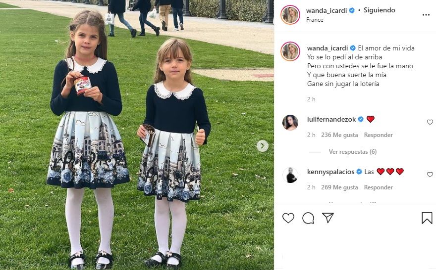 Es más, esta mañana la rubia optó por postear una salida al aire libre con sus hijas, Francesca e Isabella. Parece ser un parque parisino desde el que puede verse la Torre Eiffel.