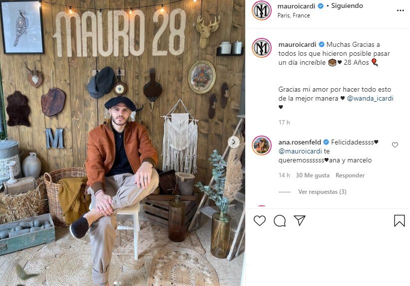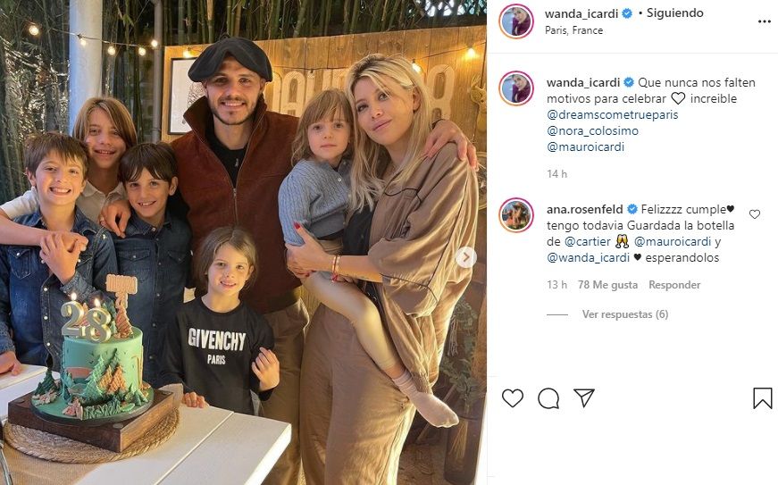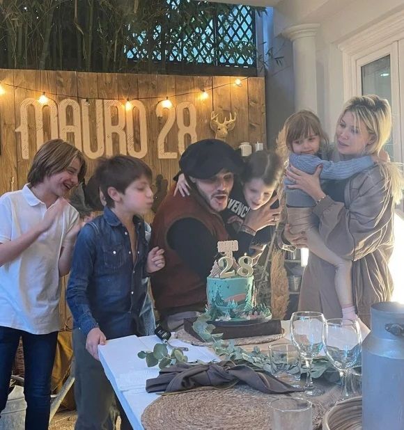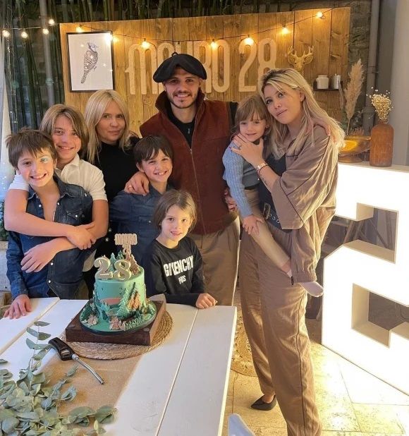Luego la empresaria compartió fotos de la celebración íntima en París, en las que se ve al futbolista junto a su esposa, junto a sus dos hijas y junto a Valentino, Constantino y Benedicto López, festejando los 28 años de Icardi.