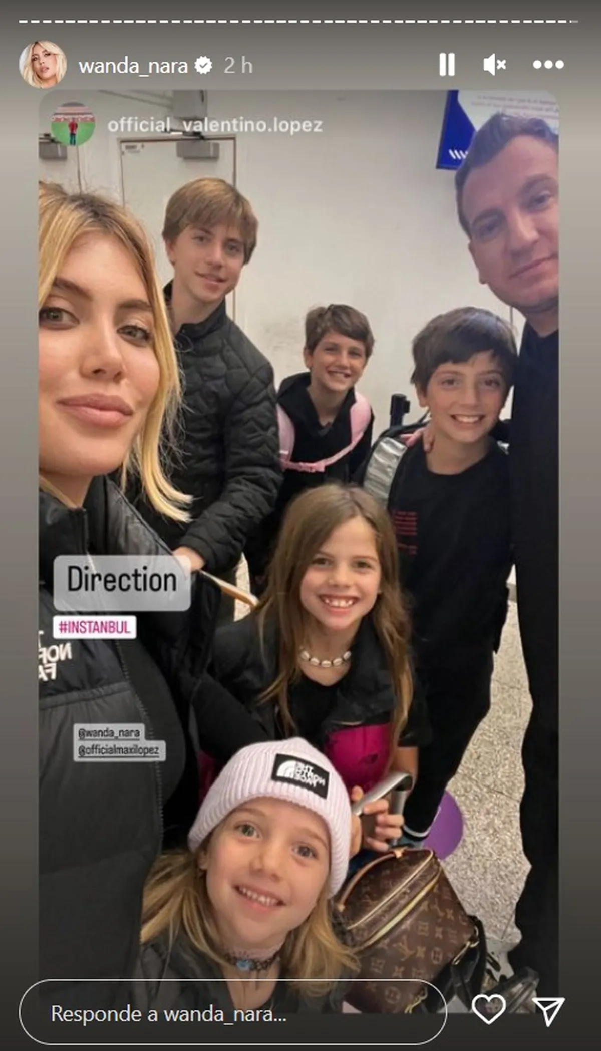 "Direction Instambul", expresó el menor en la imagen donde está junto al resto de sus hermanos y donde aparecen también Wanda y Maxi a pura sonrisa.