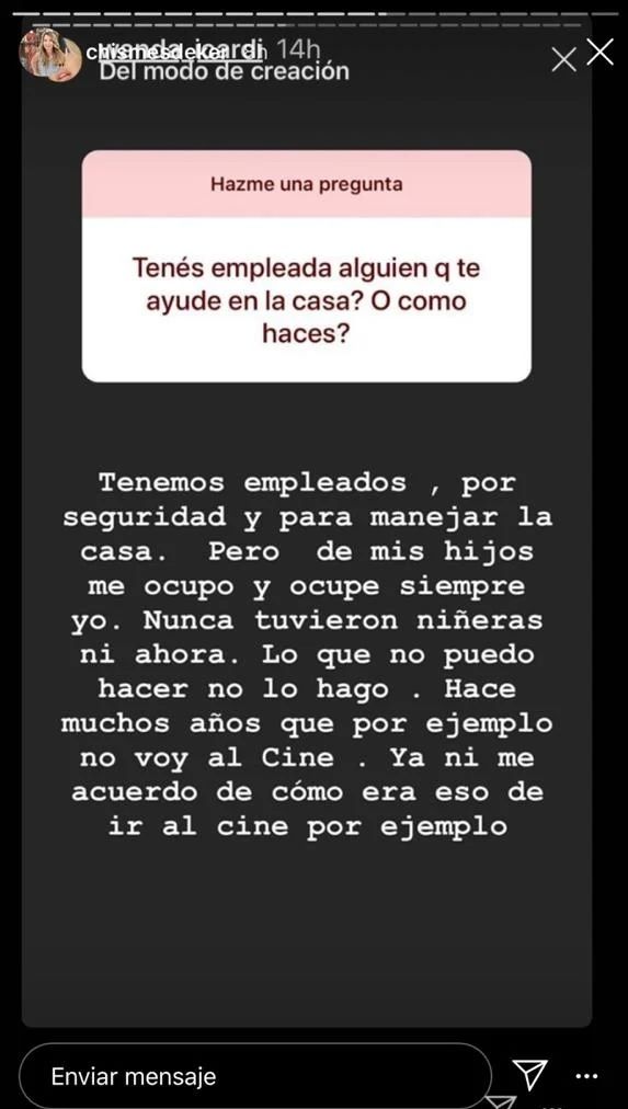 Utilizando el bloque de Instagram “hazme una pregunta”, la mediática eligió algunas de las consultas de sus fans y sin dudarlo, respondió extensas respuestas que publicó para sus más de siete millones de seguidores.