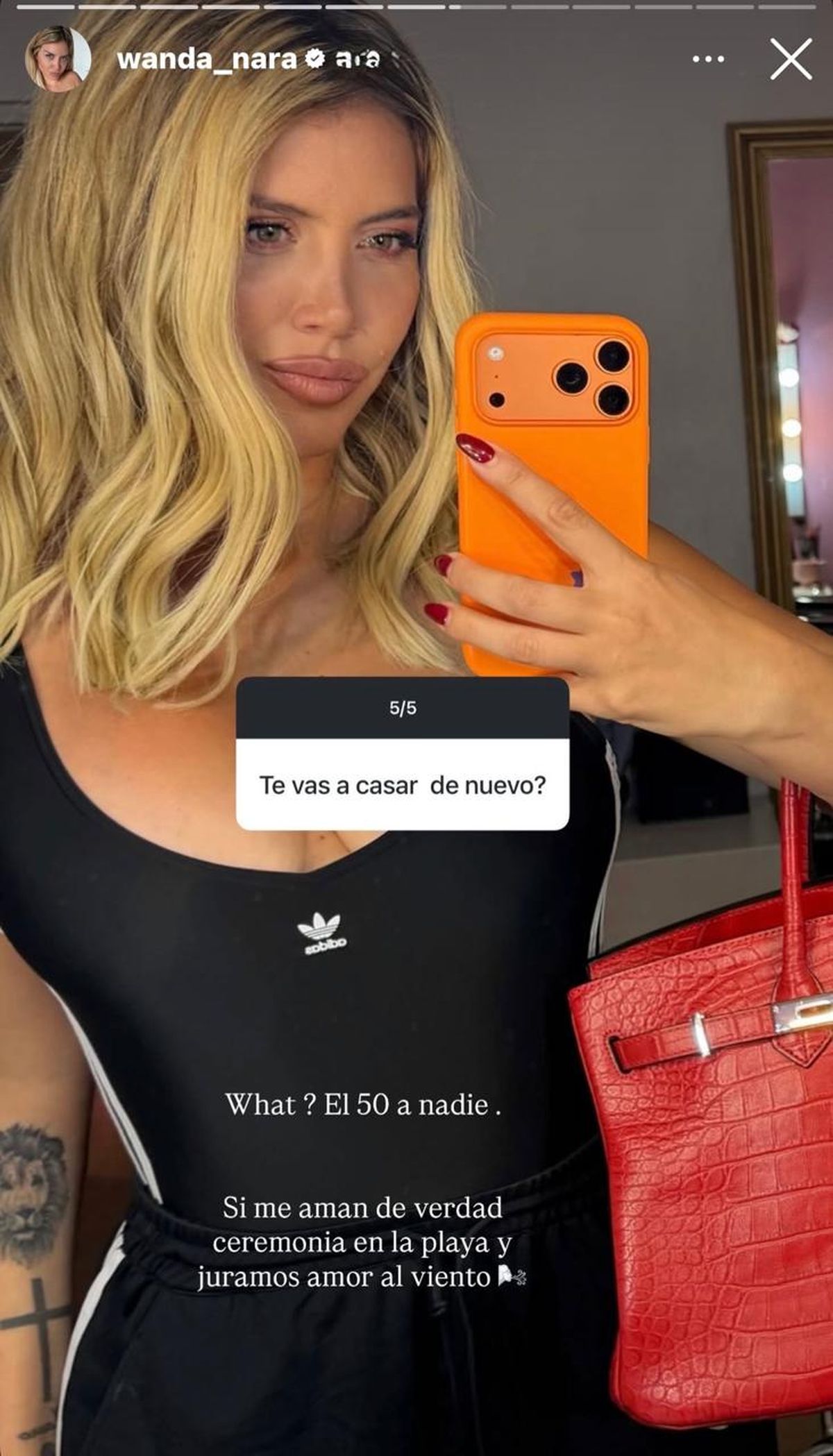 Lejos de esquivar el tema, Wanda fue directa y con un toque de ironía. “What? El 50 a nadie”, escribió en primer lugar, dejando en claro que no tiene ninguna intención de volver a mezclar sentimientos con papeles y acuerdos legales.