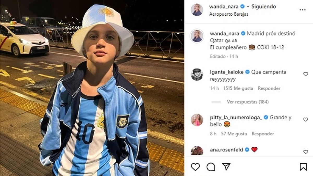 Así, en la escala madrileña Wanda Nara retrató al mediano de sus hijos, vestido enteramente con la indumentaria de la Selección Argentina, y confirmó que es Coki quien festejará su cumpleaños en el Estadio Lusail viendo la final de la Copa del Mundo que el equipo nacional disputará ante Francia. Mientras tanto, su ex Mauro Icardi, intenta recomenzar su vida.