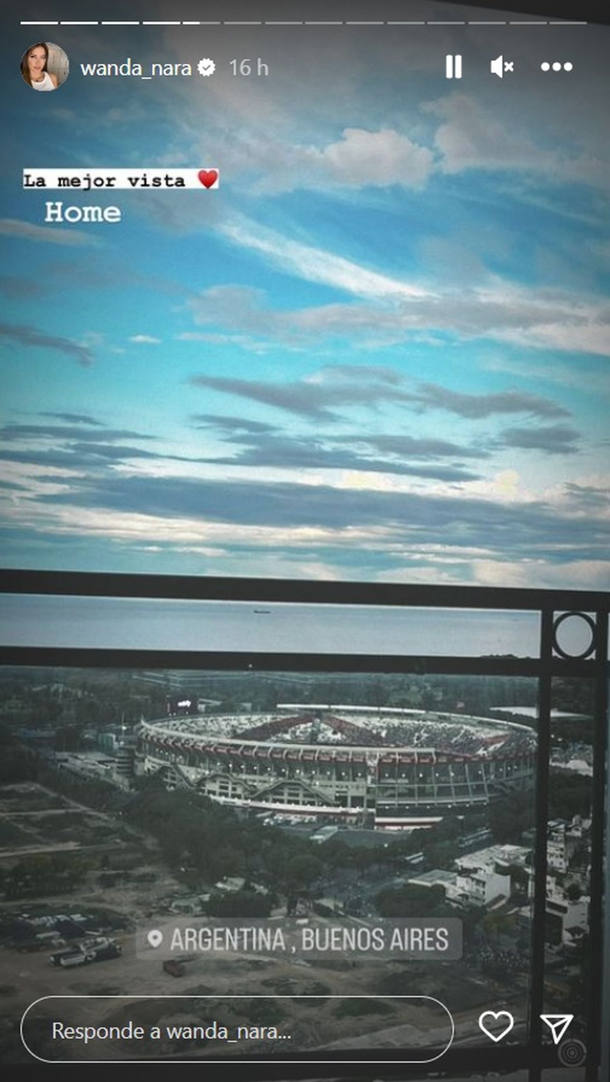 En tanto, en otra postal desde su lujoso departamento, mostró el estadio de River Plate, que está muy cerca: "La mejor vista. Home", expresó junto a un corazón.