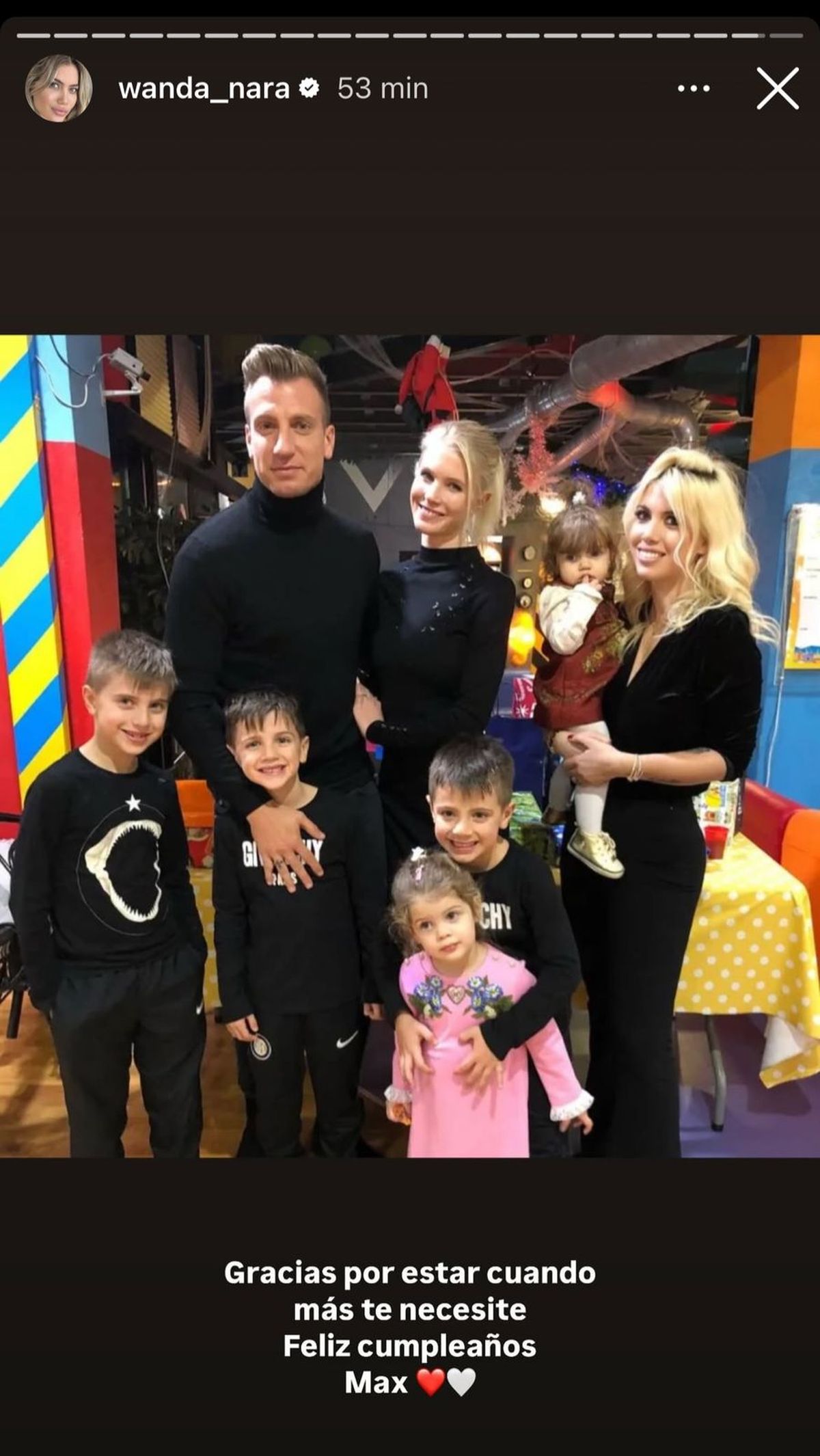 “Gracias por estar cuando más te necesite. Feliz cumpleaños Max”, escribió la mamá de sus tres hijos junto a una postal donde también aparecía la actual esposa de Maxi, Daniela Christiansson, y su hija Elle.