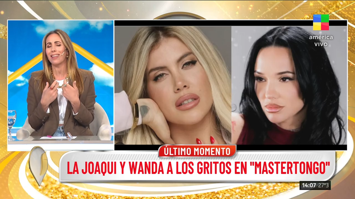 "Esto fue ayer en la grabación, mientras se estaba despidiendo Valu Cervantes, porque dejaba el programa [...] y en el momento que se graba la despedida, La Joaqui, que estaba en el balcón, ve y escucha cómo Wanda empieza a despedir a Valu Cervantes, que por supuesto esto sí lo vamos a ver, que le dice 'ay querida, queridísima, yo pasé por lo tuyo, te entiendo, dejar a la familia' y se pone en ese rol de mártir, de mujer de jugador", comenzó relatando la periodista.
