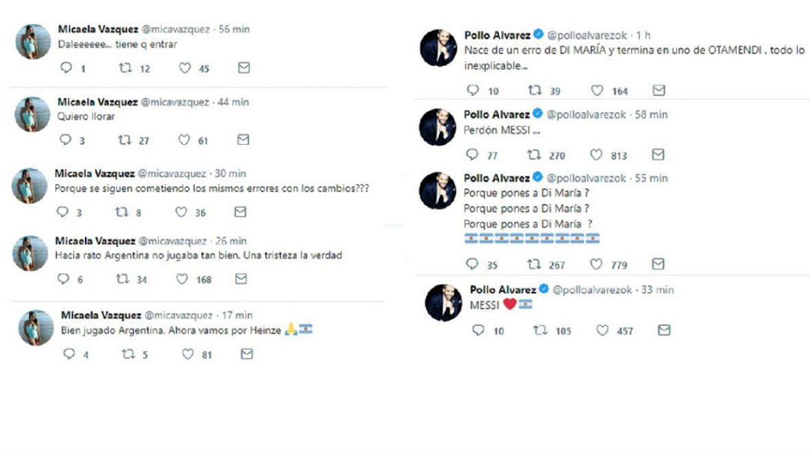 En las redes sociales muchos de ellos comentaron el partido y apuntaron al polémico arbitraje del ecuatoriano Roddy Zambrano no cobró dos claros penales en favor de la selección nacional.