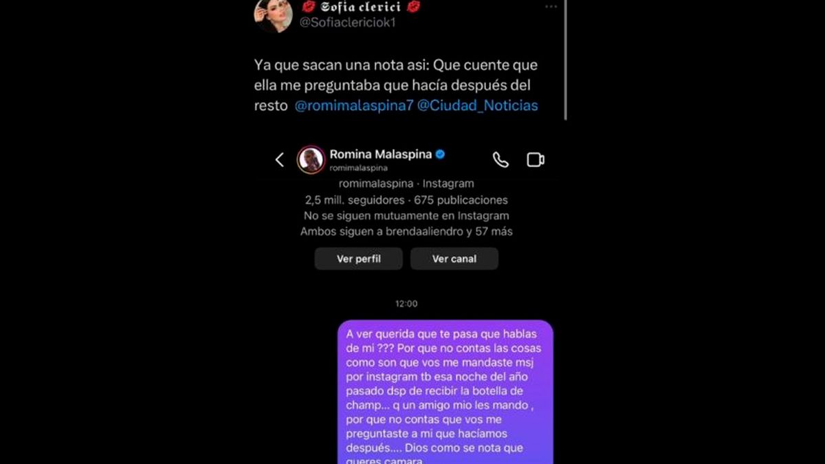 "A ver querida que te pasa que hablas de mi? Porque no contas las cosas como son, que vos me mandabas mensajes por Instagram también esa noche del año pasado después de recibir la botella de champán que un amigo mio les mando… Por qué no contas que vos me preguntaste a mi que hacíamos después… dios como se nota que querés cámara”, le decía Sofía a Romina en ese mensaje.