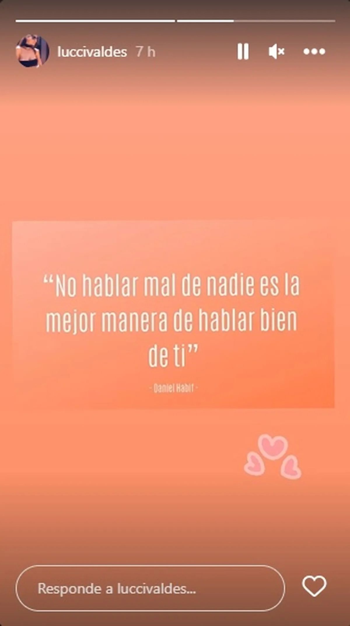 Así, Lucía Valdés salió a disparar un filoso dardo contra Cande Tinelli para defender a Guillermina a través de una sutil, pero contundente, frase desde sus Instagram Stories. Allí puede leerse: "No hablar mal de nadie es la mejor manera de hablar bien de ti".