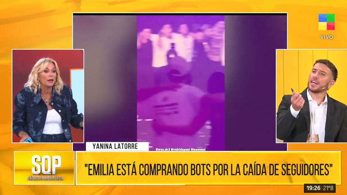 Siempre filosa, la conductora compartió al aire el dato que le llegó en tiempo real y no dudó en exponerlo. “Me están mandando una data. Emilia, cuando vio que la empezaron a dejar de seguir, porque no sólo la dejaron de seguir estos grosos, sino también los fans, está comprando bots”, lanzó sin filtro, dejando en claro que la situación sería más compleja de lo que parecía a simple vista.