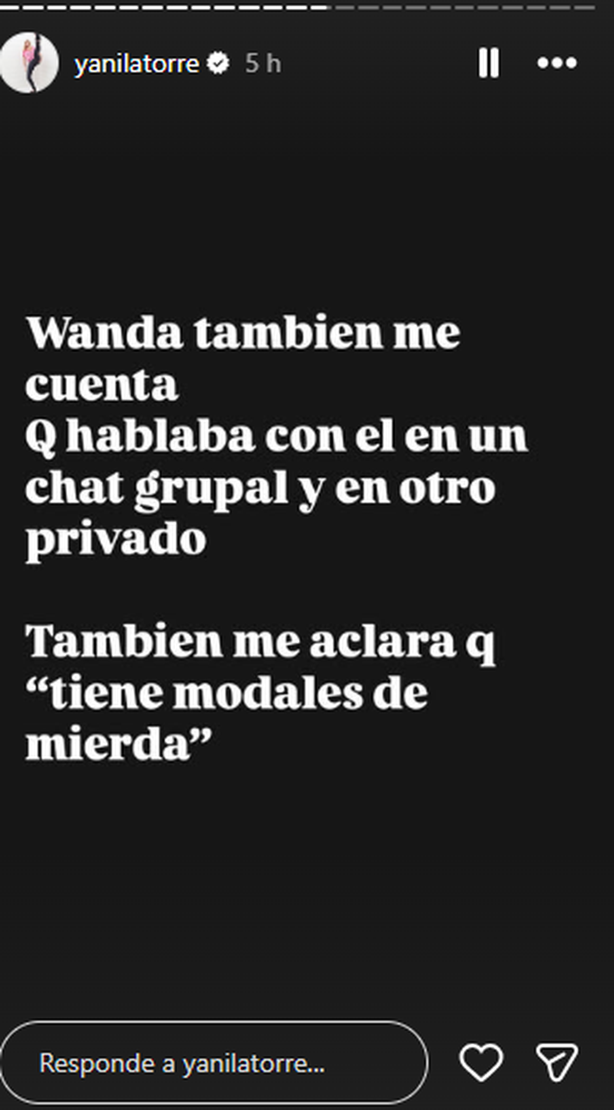 Y siguió: “Wanda también me cuenta que hablaba con él en un chat grupal y en otro privado. También me aclara que tiene ‘modales de mierda’”.